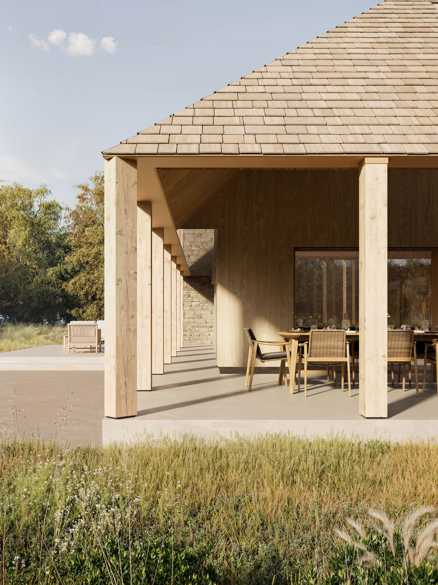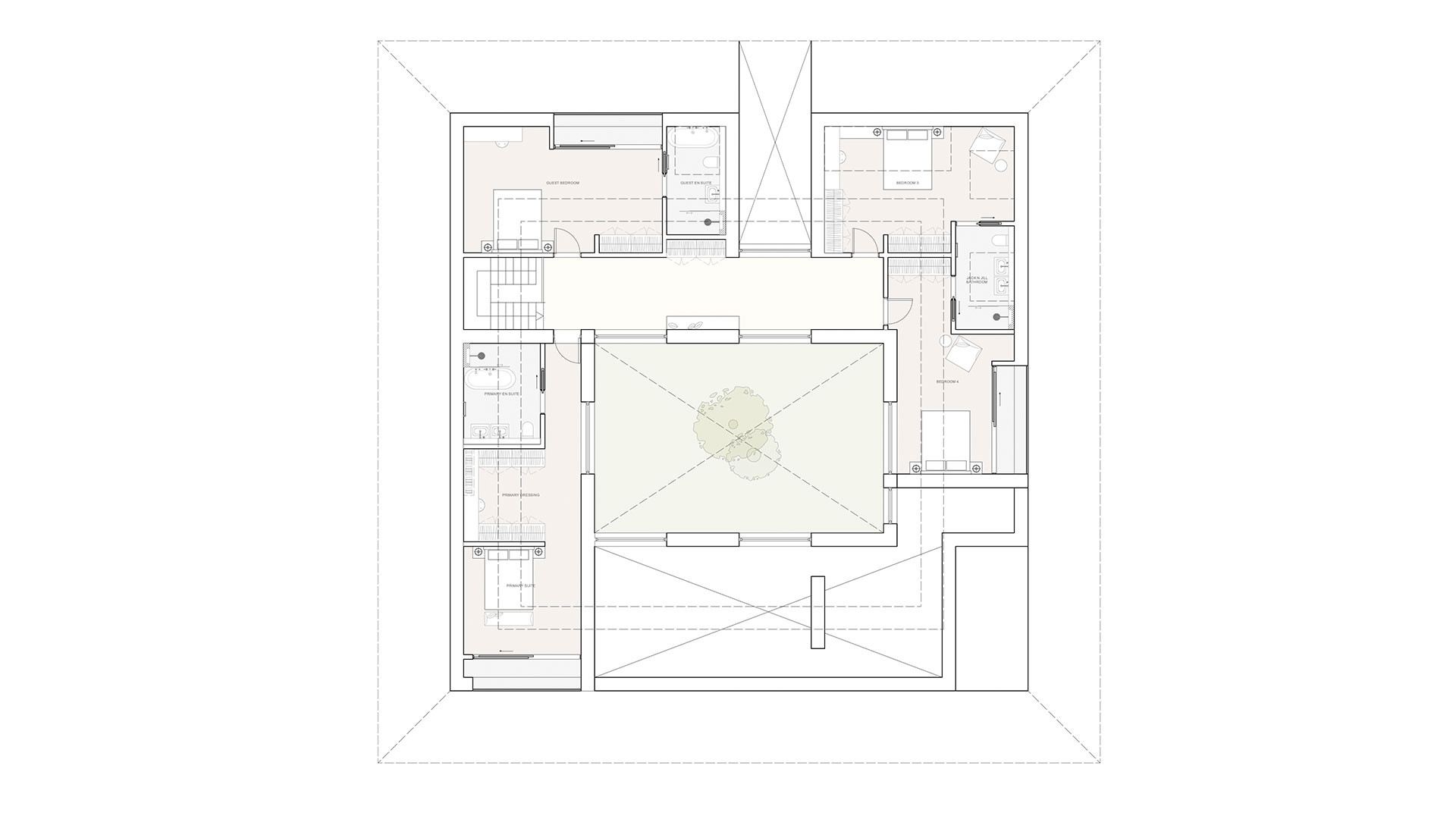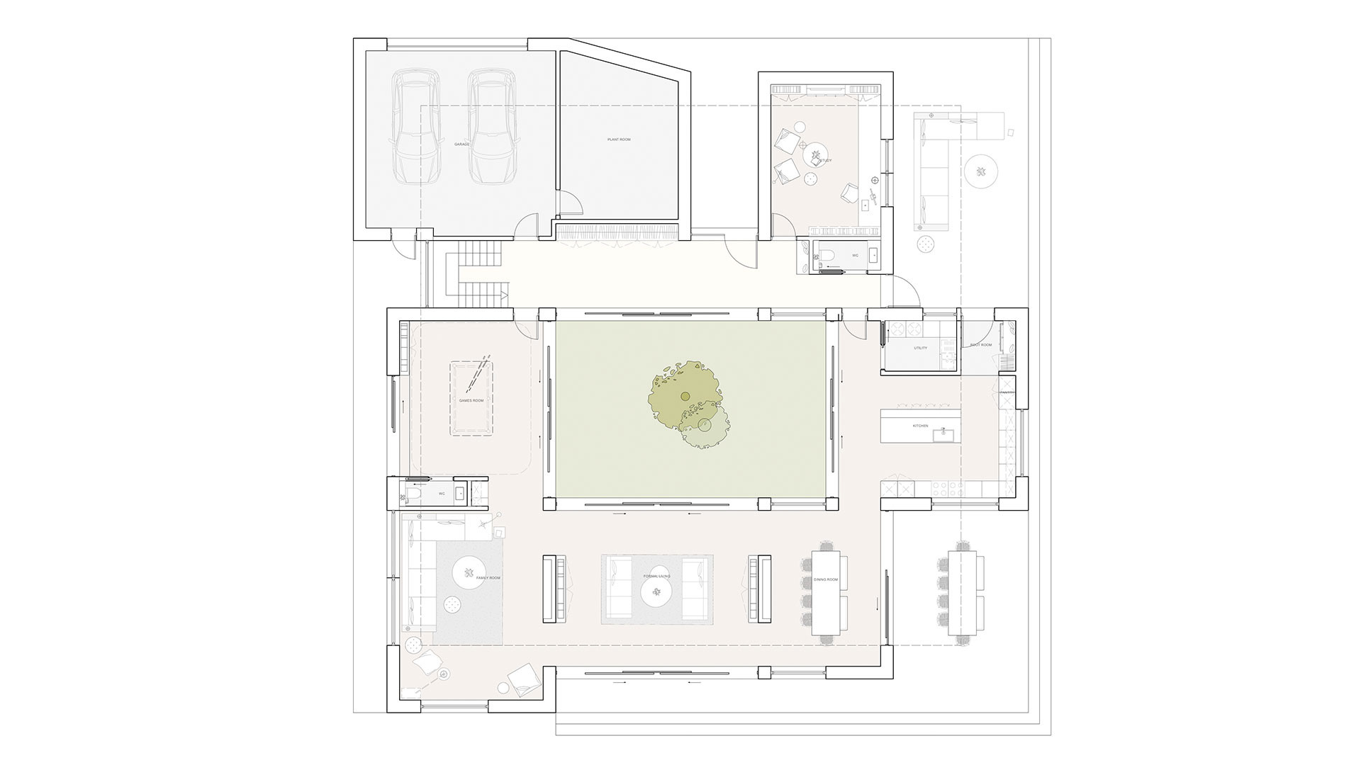 Rooted in the Scandinavian ethos of simplicity, calm, and connection to nature, the courtyard is more than a spatial gesture; it is a lived experience. Filled with trees and planting, the inner garden aims to create a tranquil core that anchors daily life and provides the home with a quiet, meditative quality.
