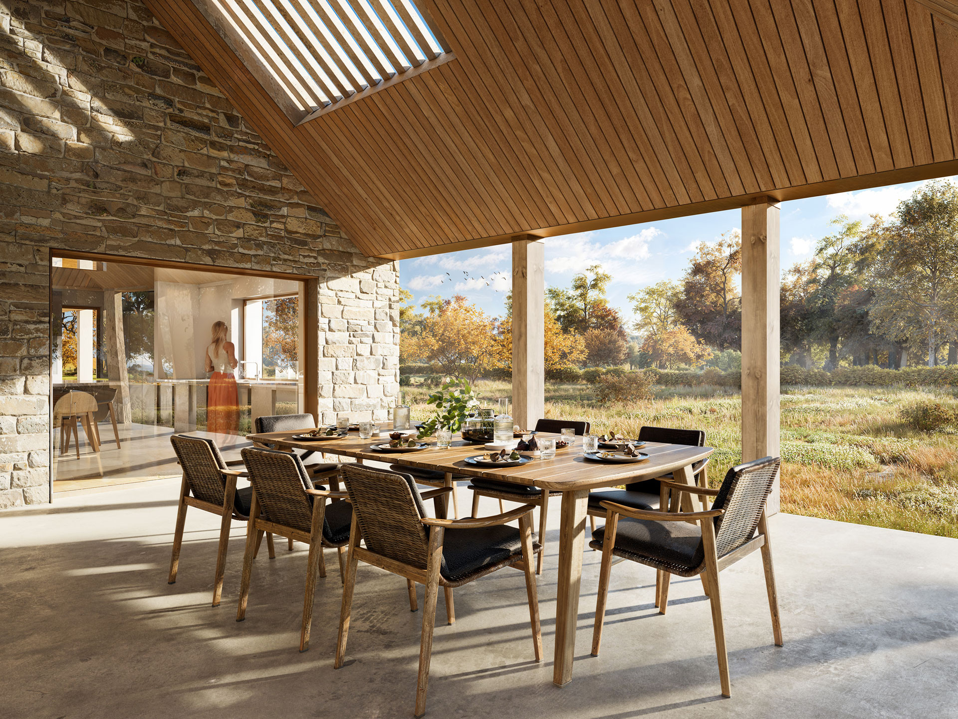 A private residential home in open countryside centred around a courtyard dedicated to nature.