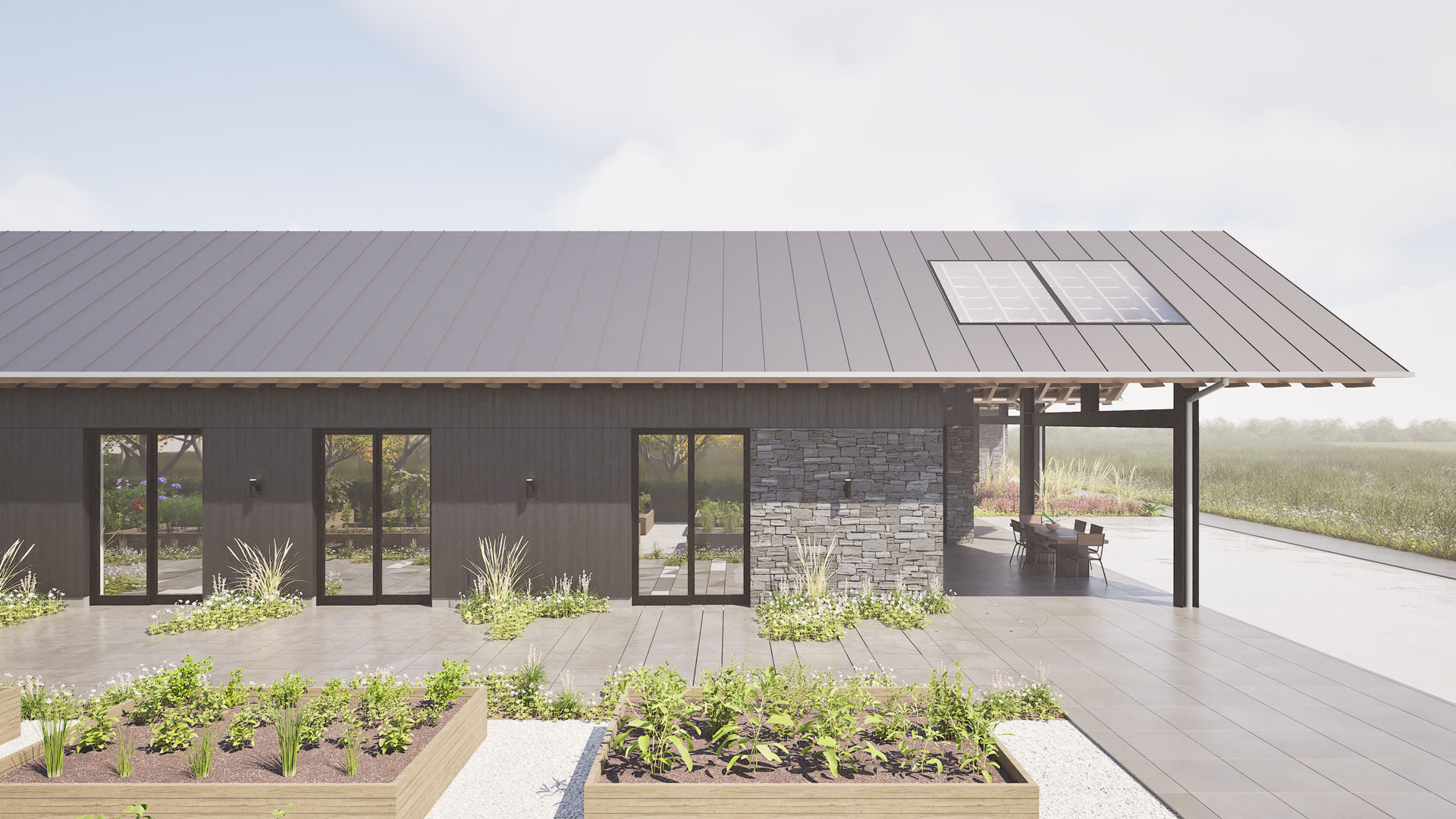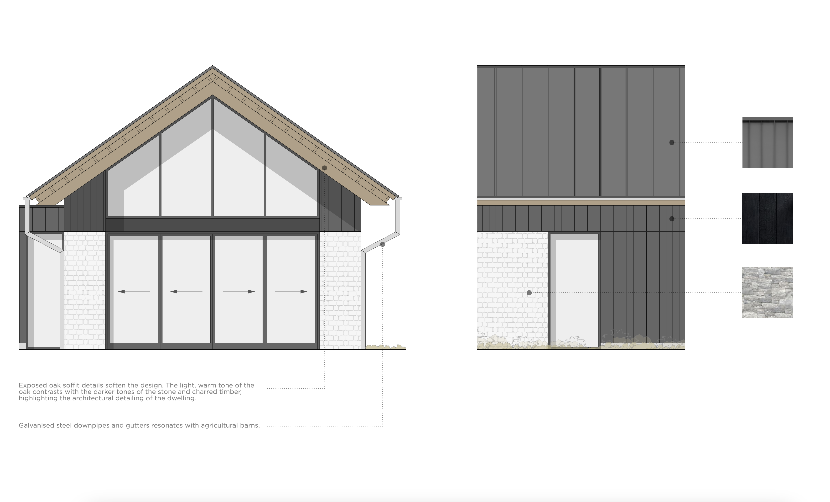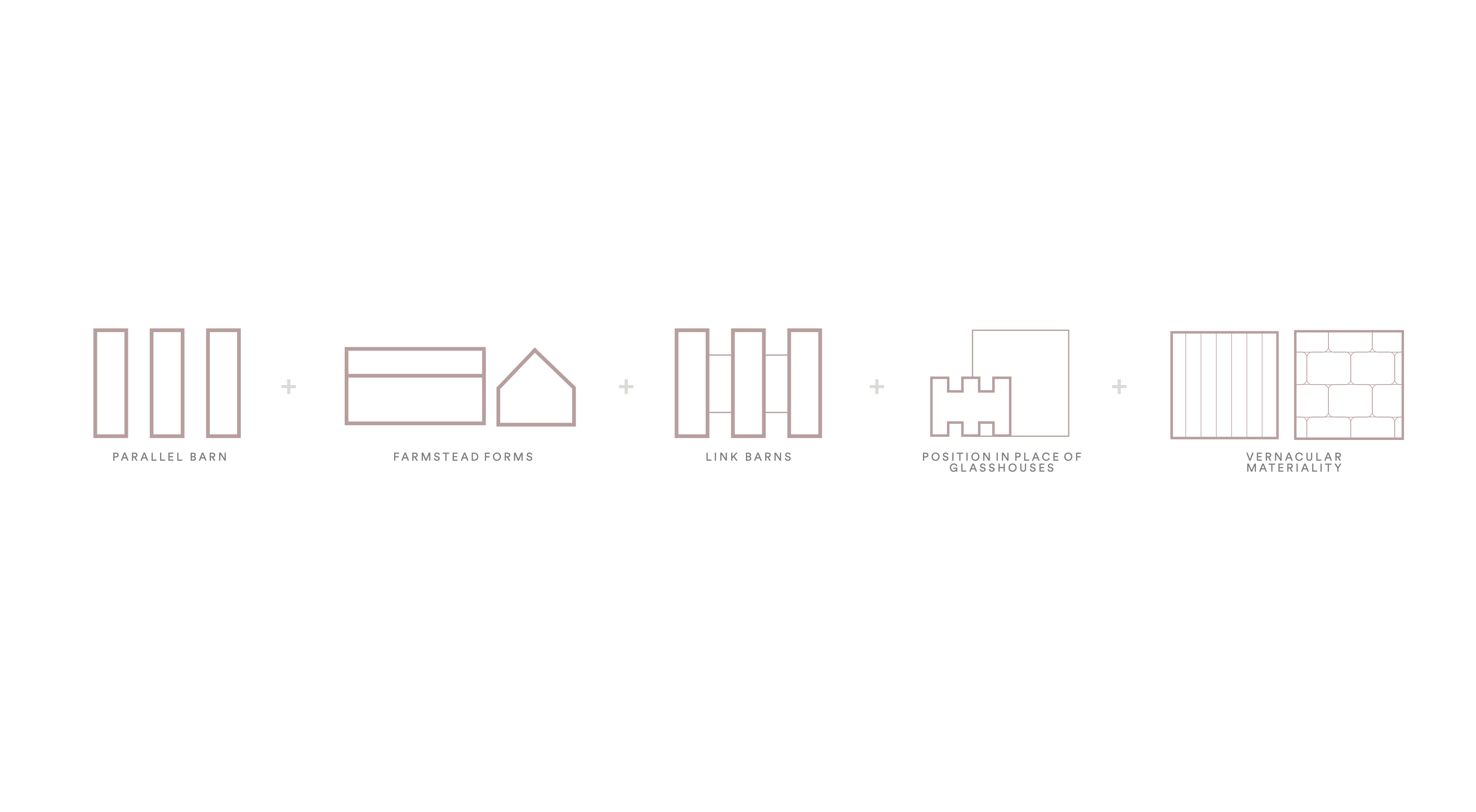 Located in designated open countryside, the project replaces an existing horticultural nursery with a private residential property. Designed with a focus on single-storey, accessible living, the house is divided into three distinct barn-style sections: the main wing comprising a rehabilitation area and primary suite, the central barn for living and socialising, and the residential wing for ancillary bedrooms.