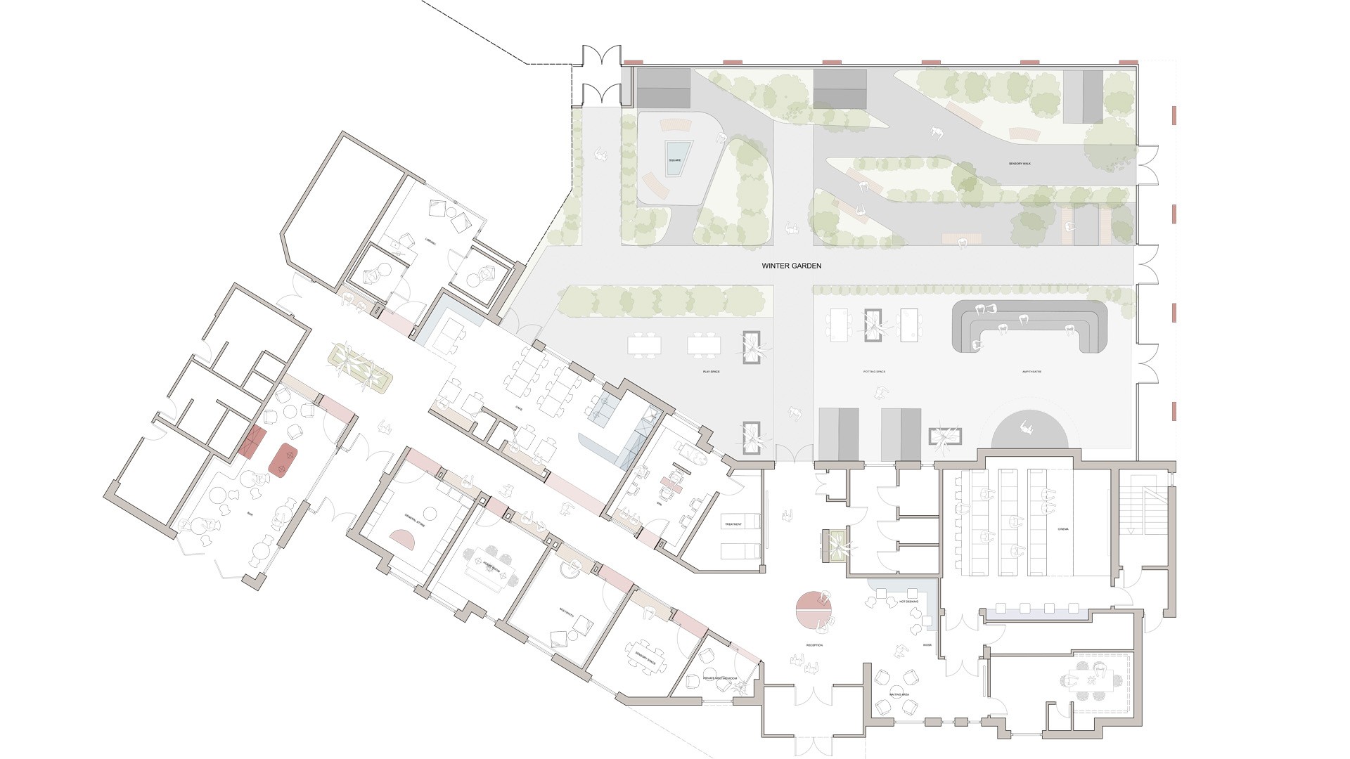 The proposed winter garden creates a year-round usable and enjoyable space. A highly efficient thermal envelope and ETFE roof simulates a controlled outdoor setting, preventing over heating and cooling compared to conventional glass structures.