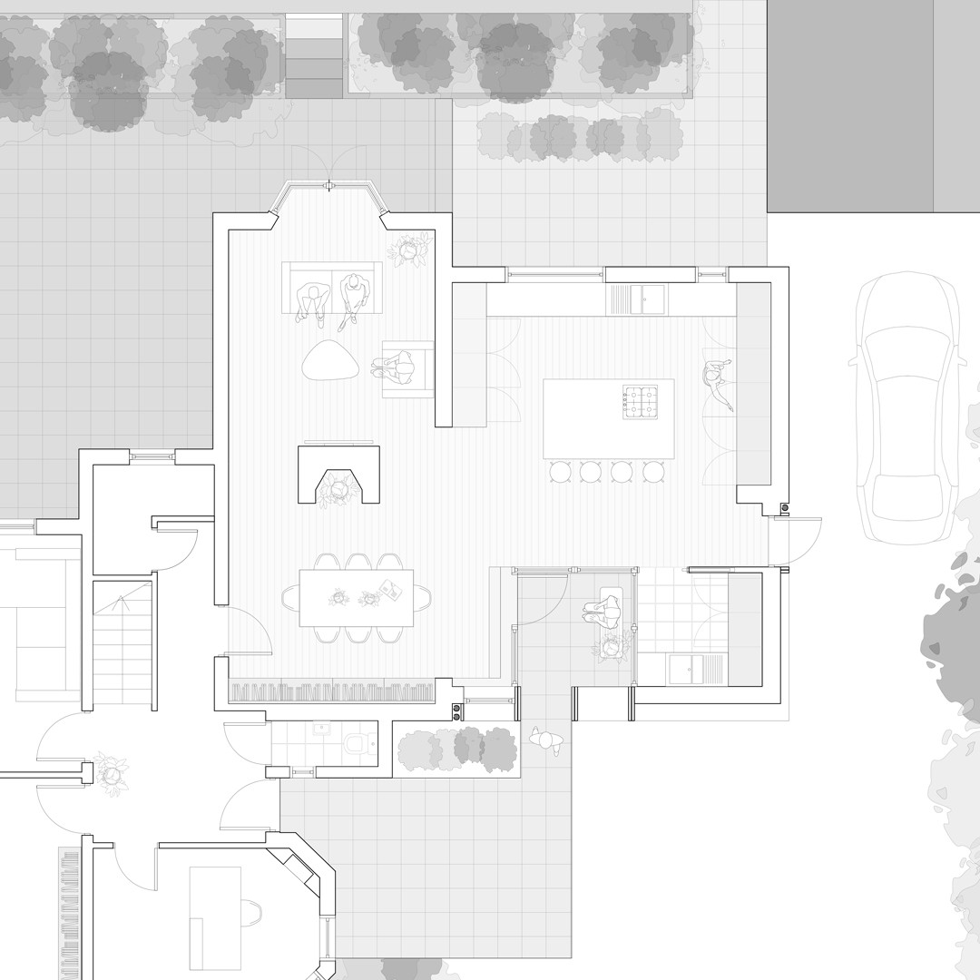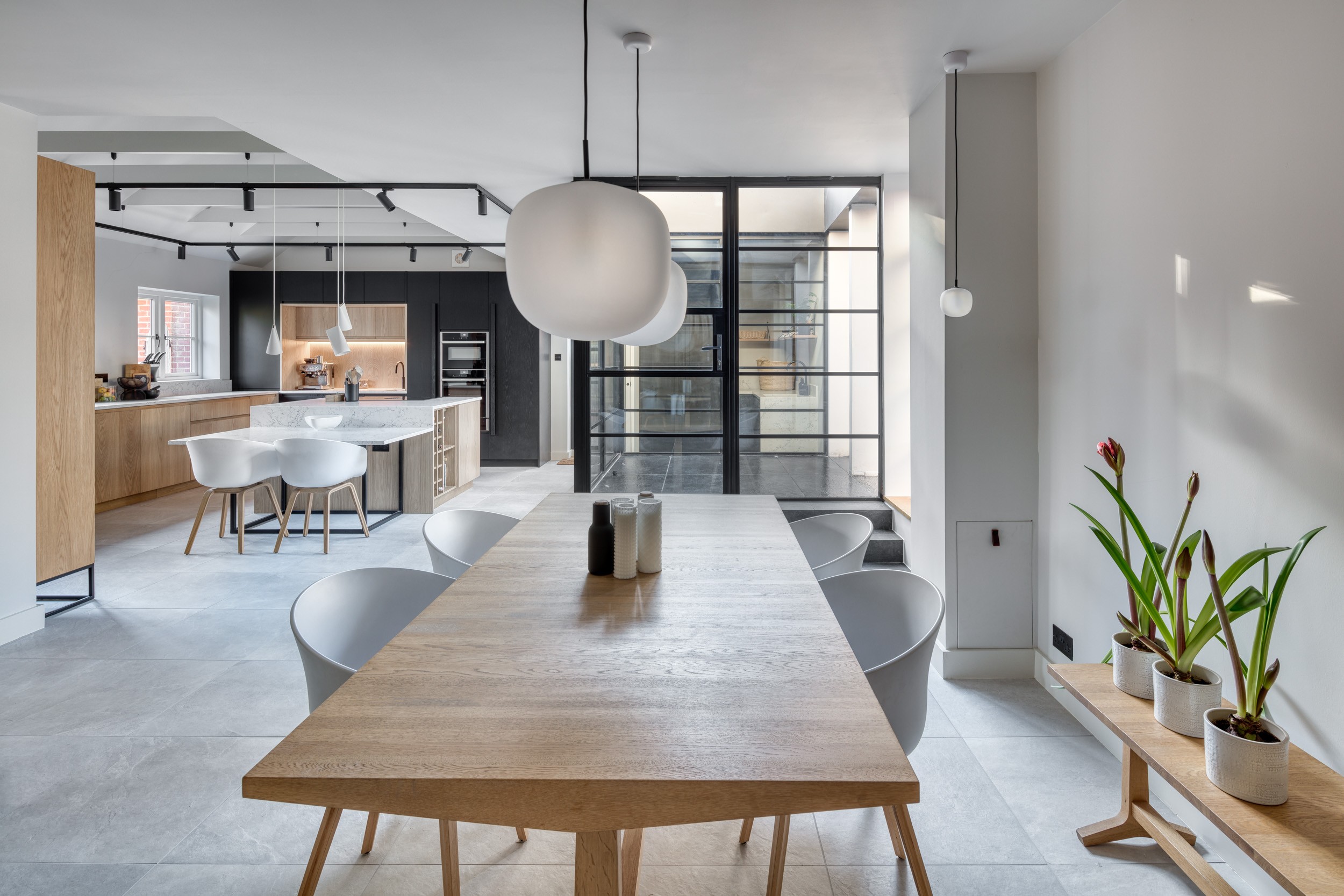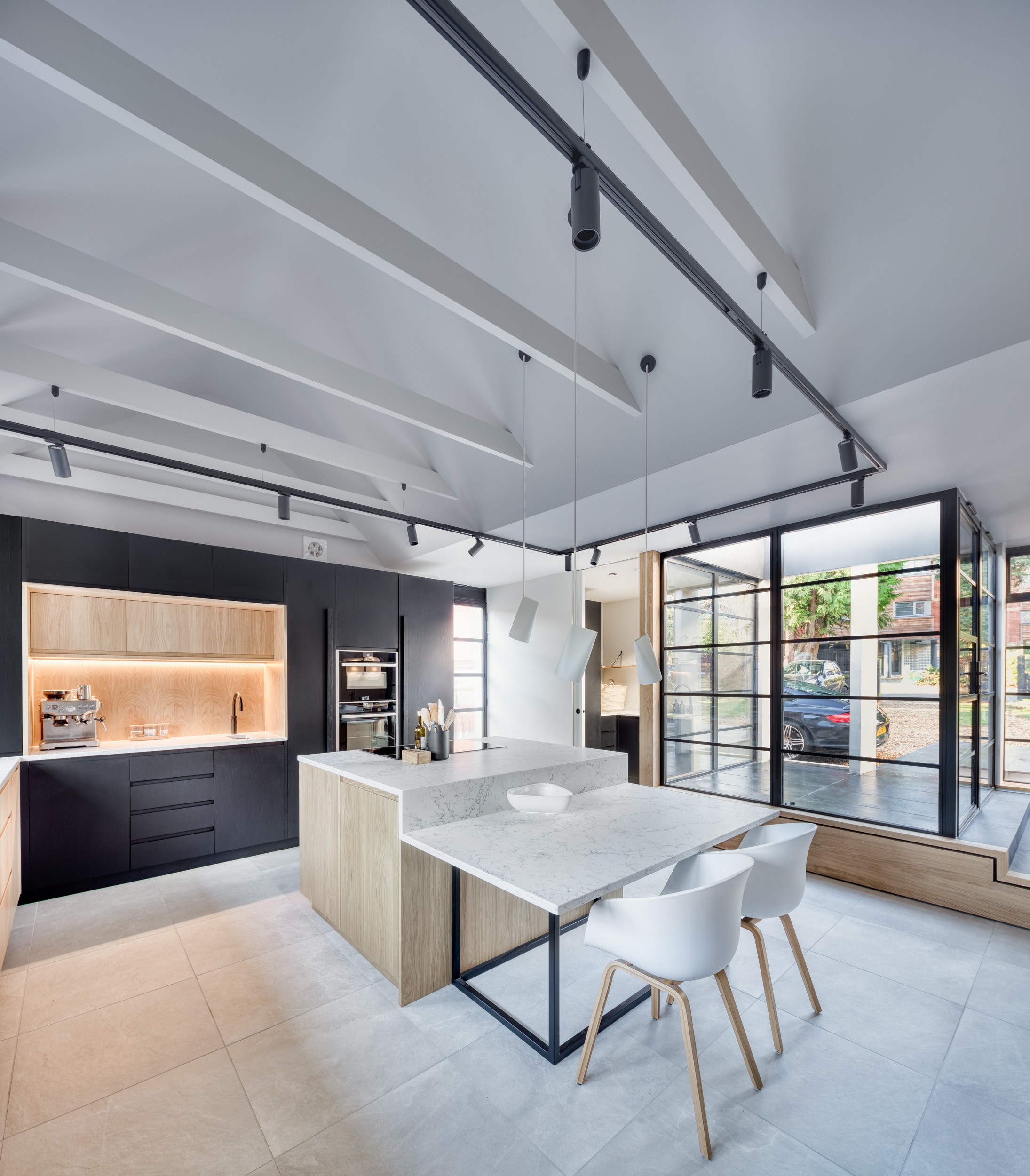 A contemporary addition in juxtaposition to the existing property. The external material palette was careful crafted with minimalism in mind. The brickwork has been matched to the existing house, whilst an exposed concrete frame pays homage to window and door lintels on the existing victorian property.
