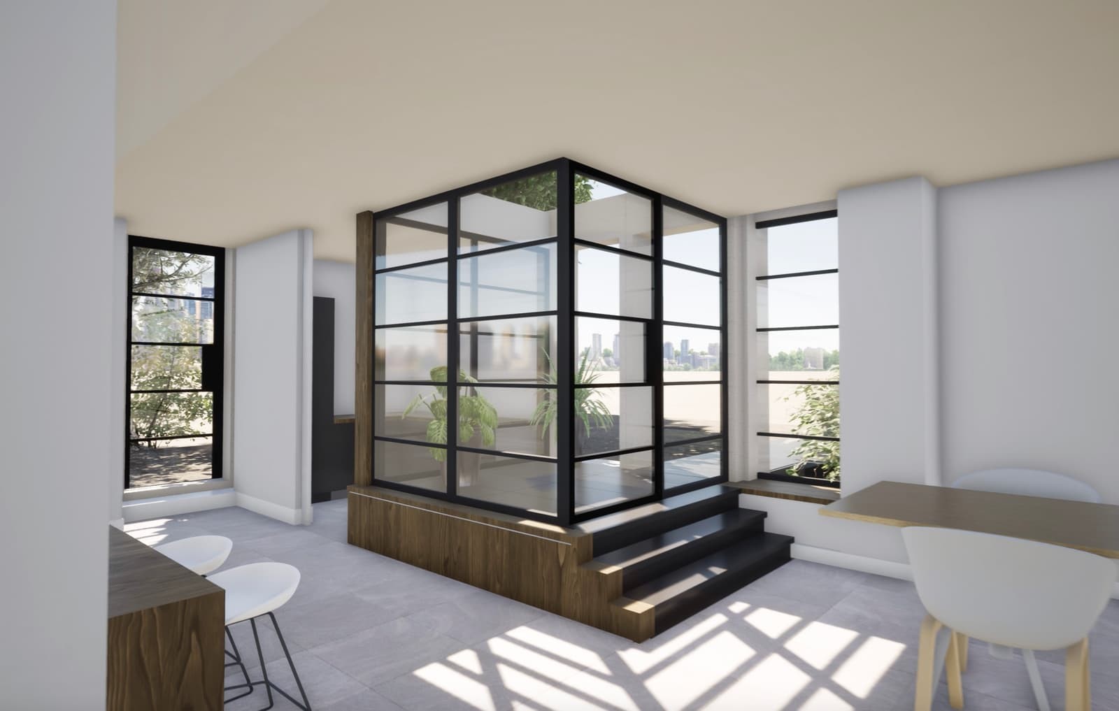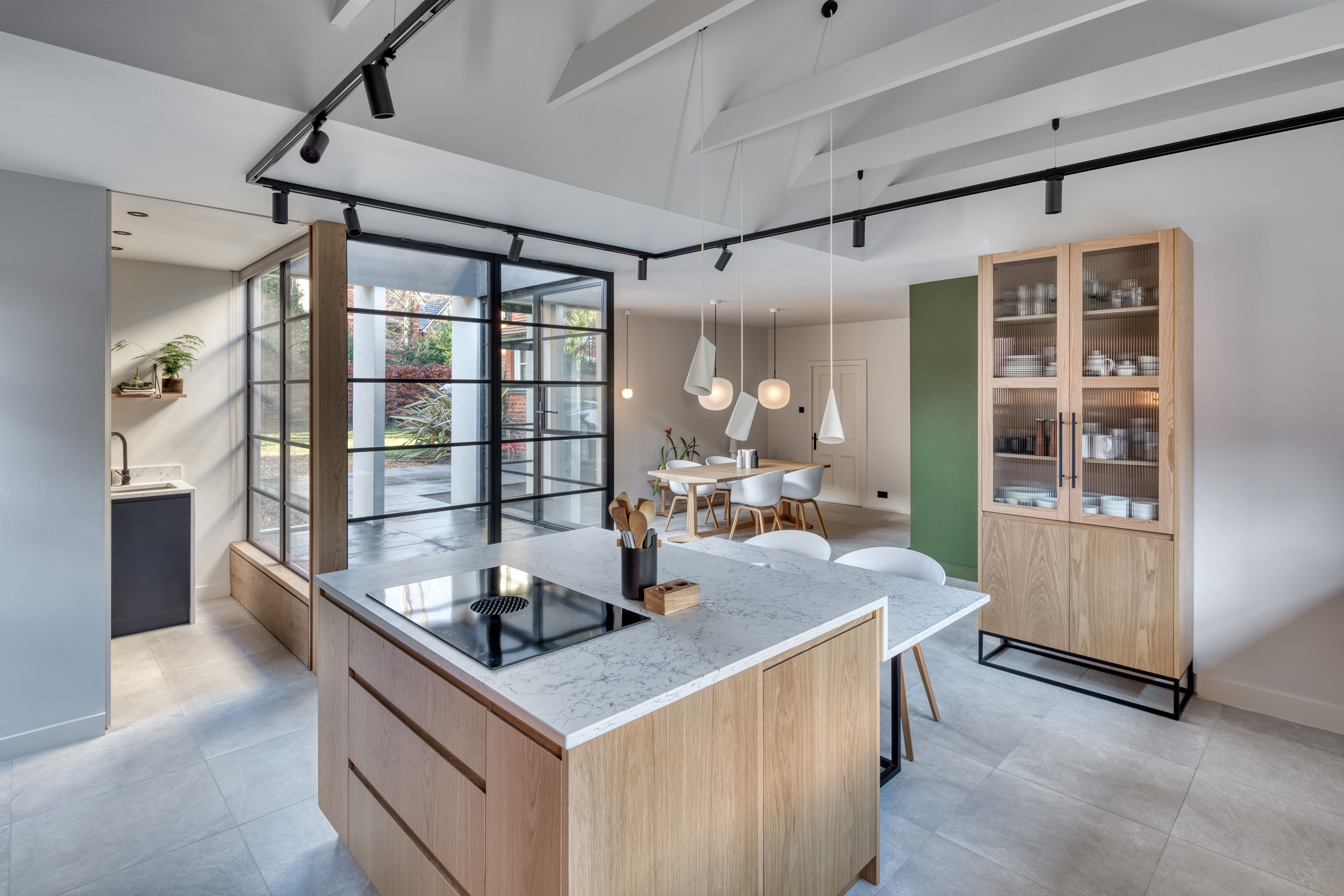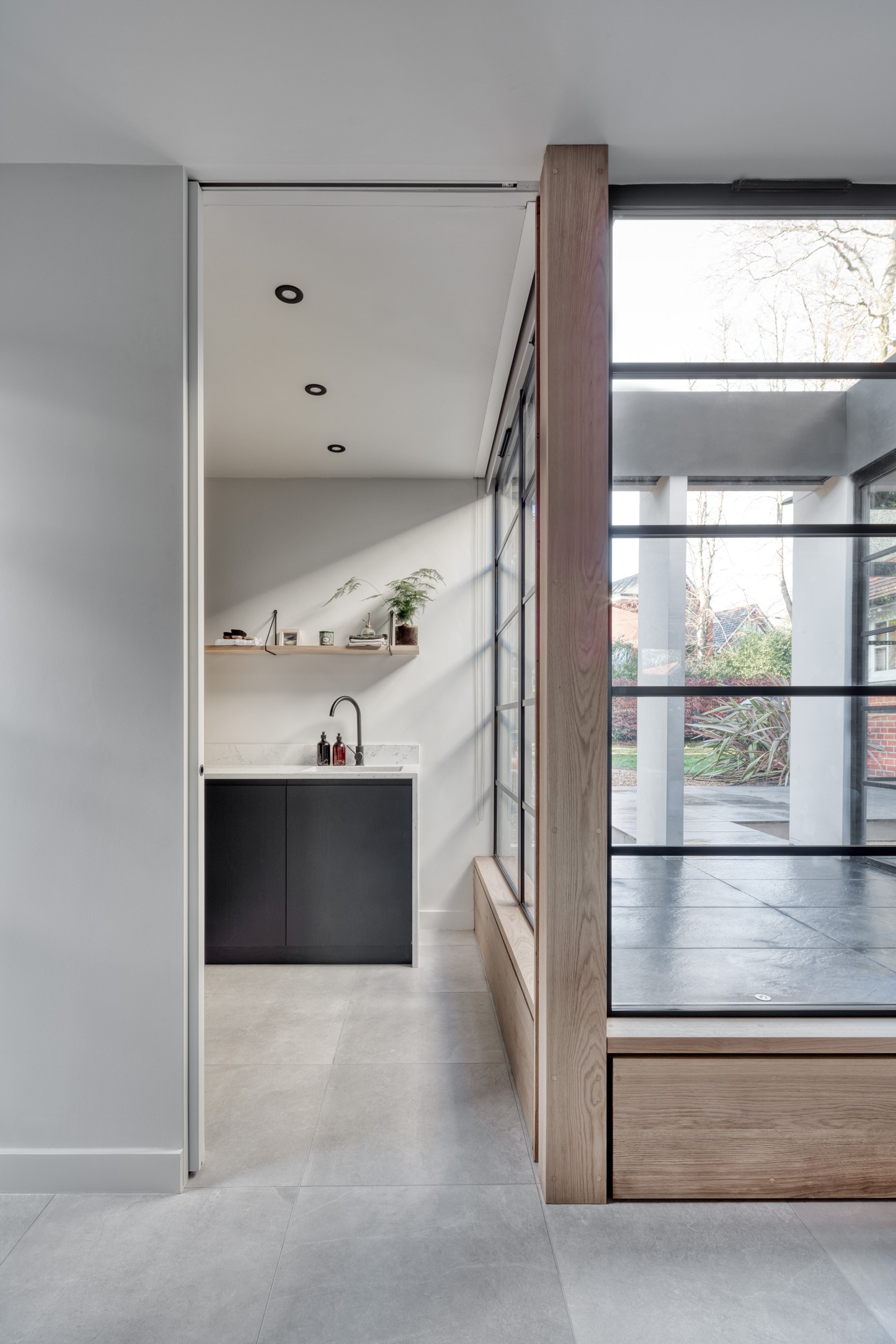A contemporary addition in juxtaposition to the existing property. The external material palette was careful crafted with minimalism in mind. The brickwork has been matched to the existing house, whilst an exposed concrete frame pays homage to window and door lintels on the existing victorian property.
