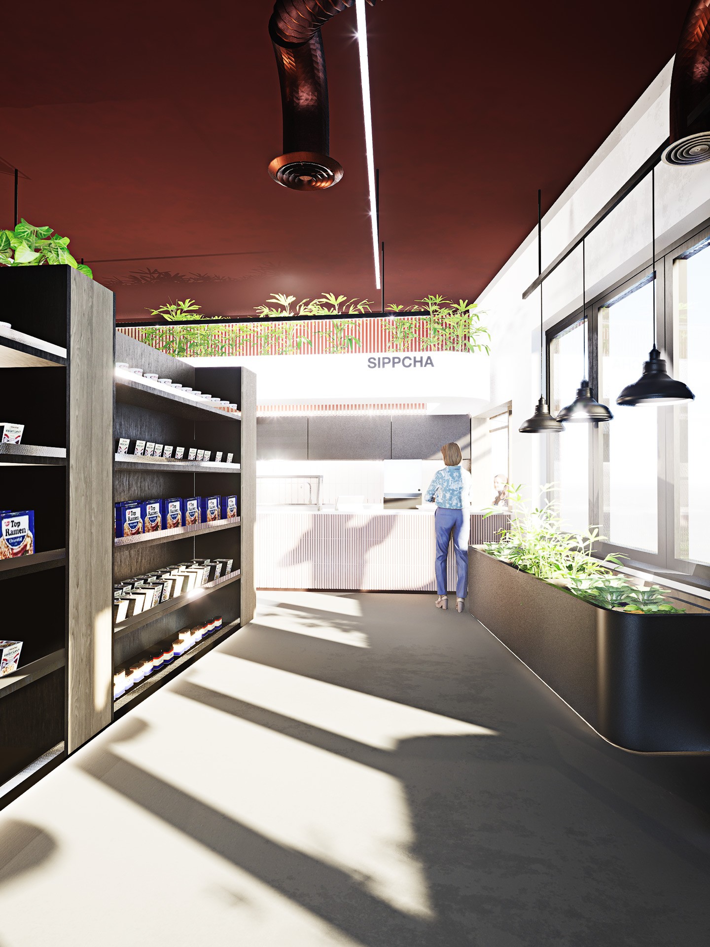 Concept Store seeks to re-imagine the conventional local store, revolutionising it into a supermarket, deli and bubble tea bar. Rooted in nature and inspired by traditional material & colour palette associated with ancient traditions, the project challenges the conventional through forward-thinking interior design.