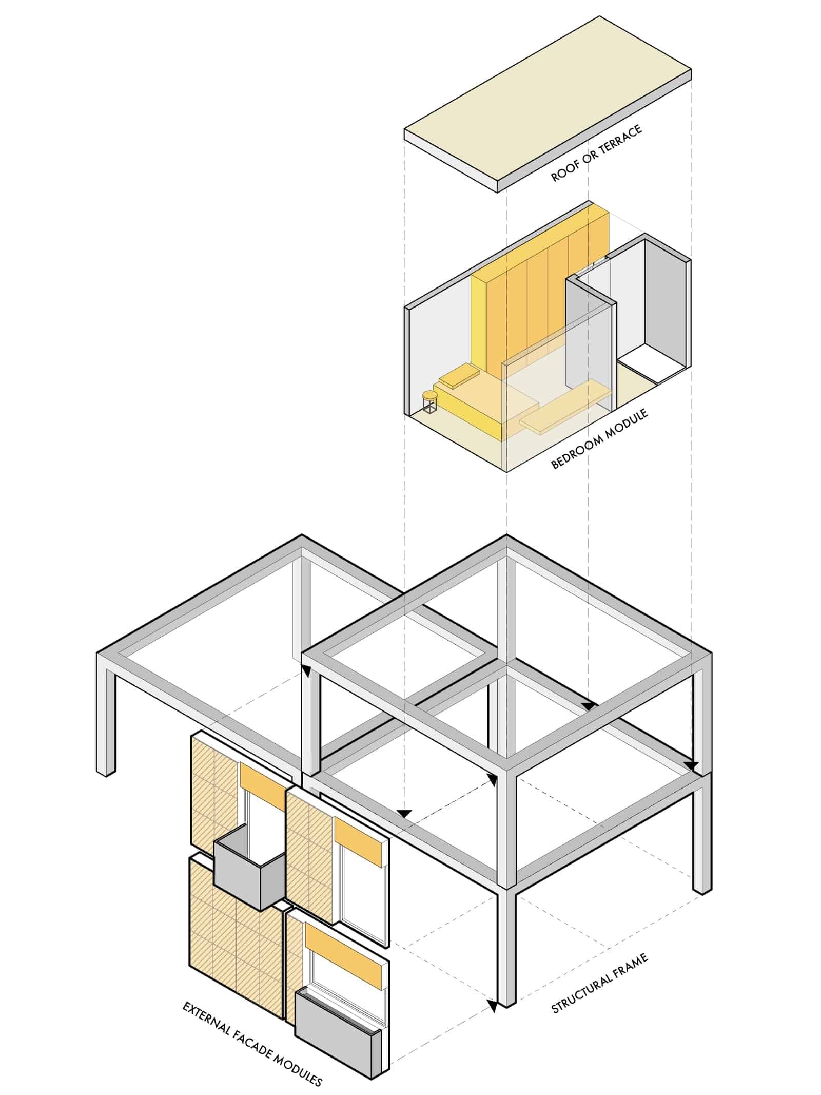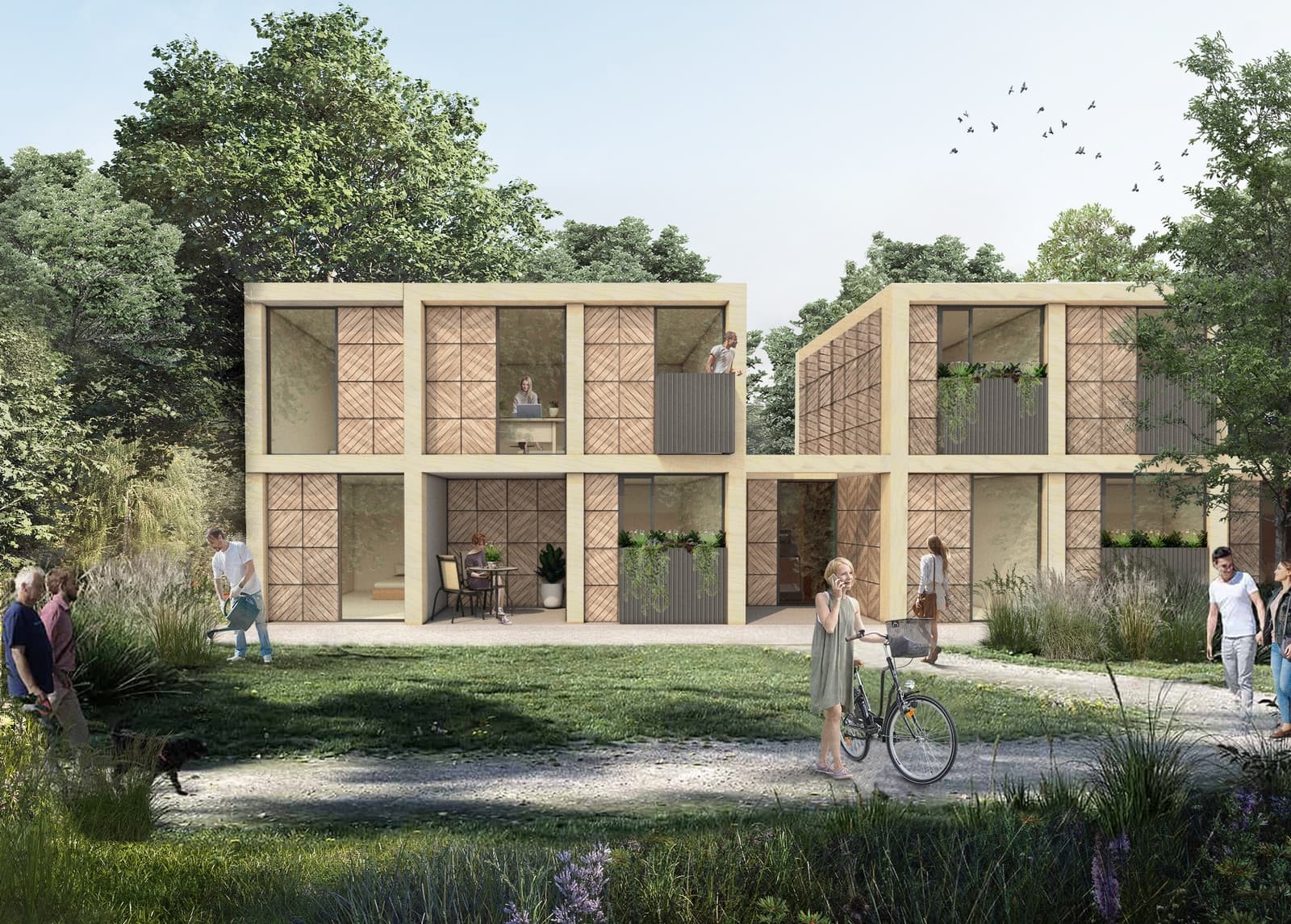 A village is defined as ‘‘a group of houses and associated buildings... situated in a rural area’. and/or ‘a self-contained district or community within a town or city, regarded as having features characteristics of village life’. Based on the rural charm and self-containment of the site, we developed a proposal which sought to compliment and heighten the sense of community, whilst promoting Modern Methods of Construction at the core principle of its design (MMC).