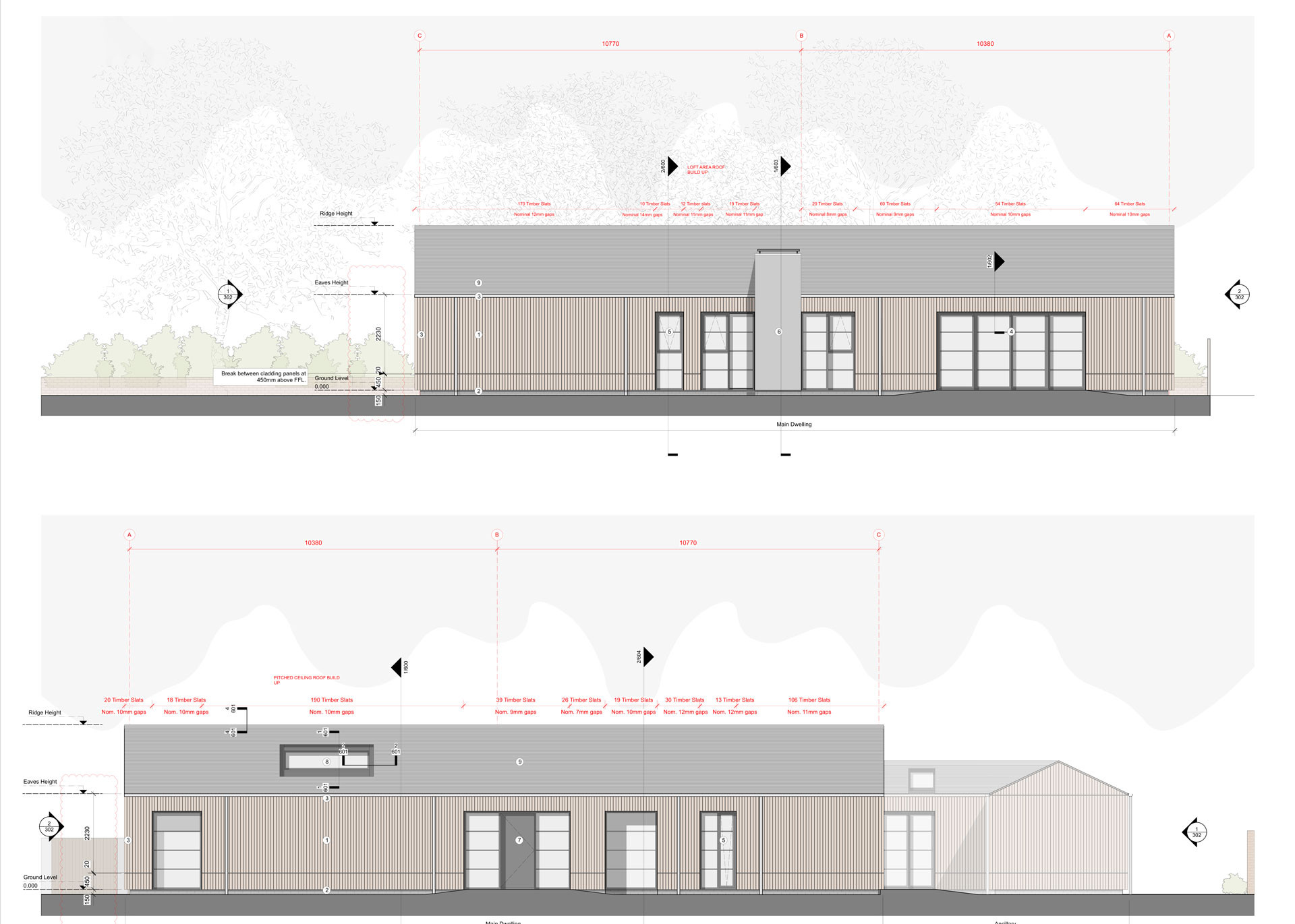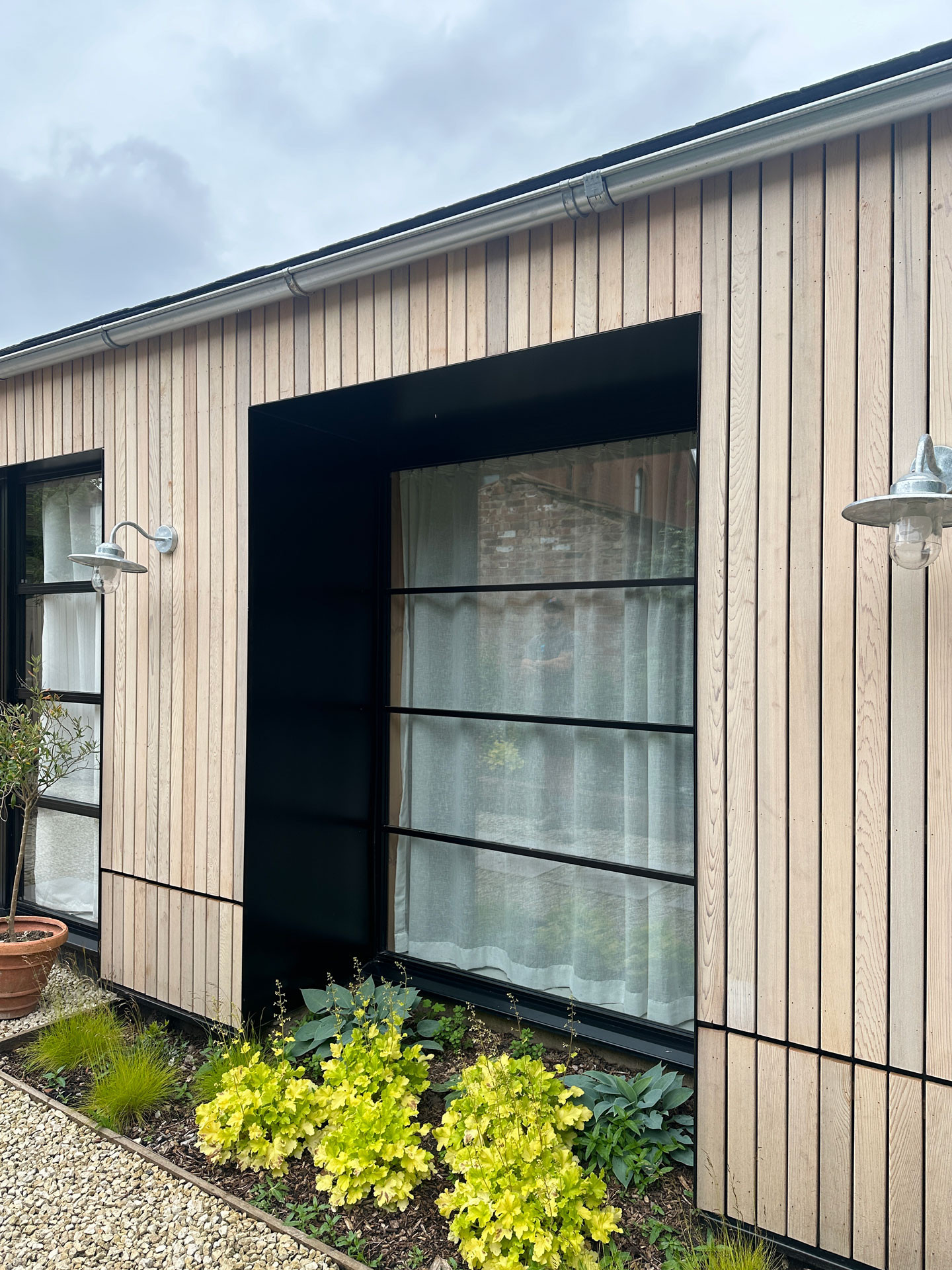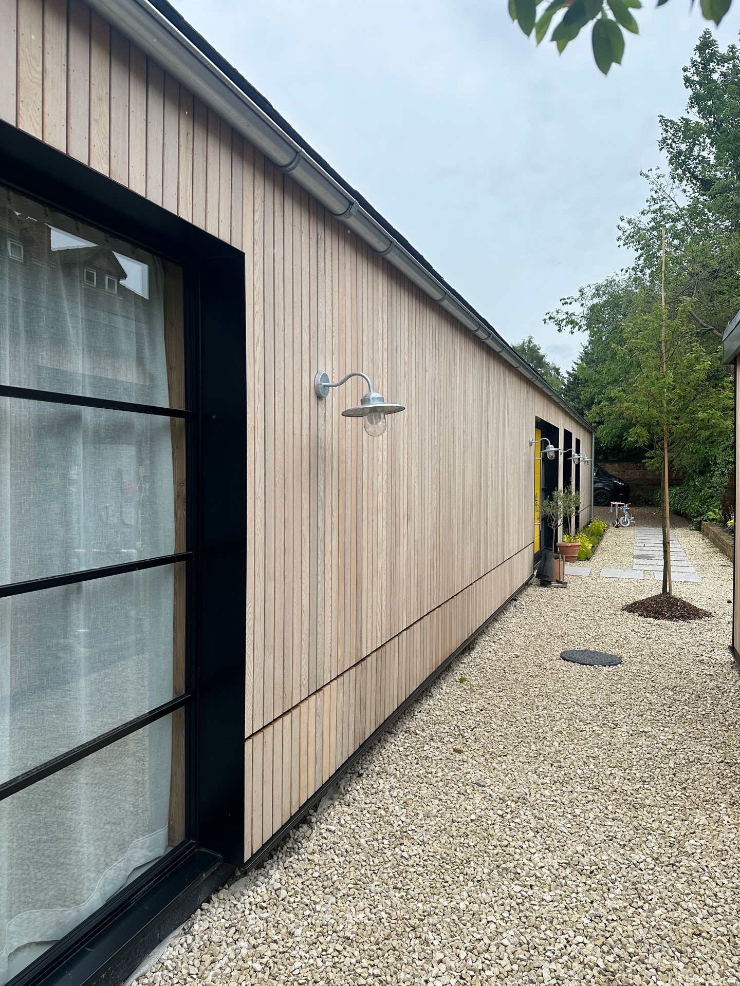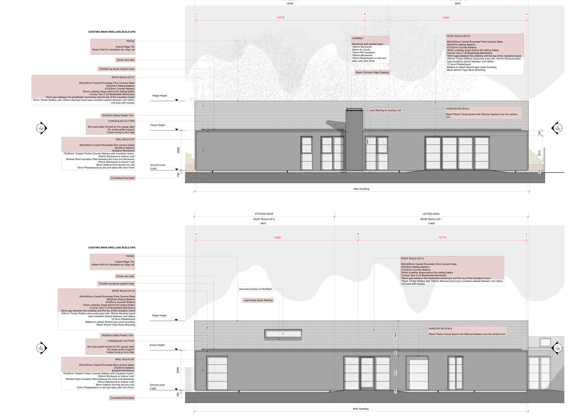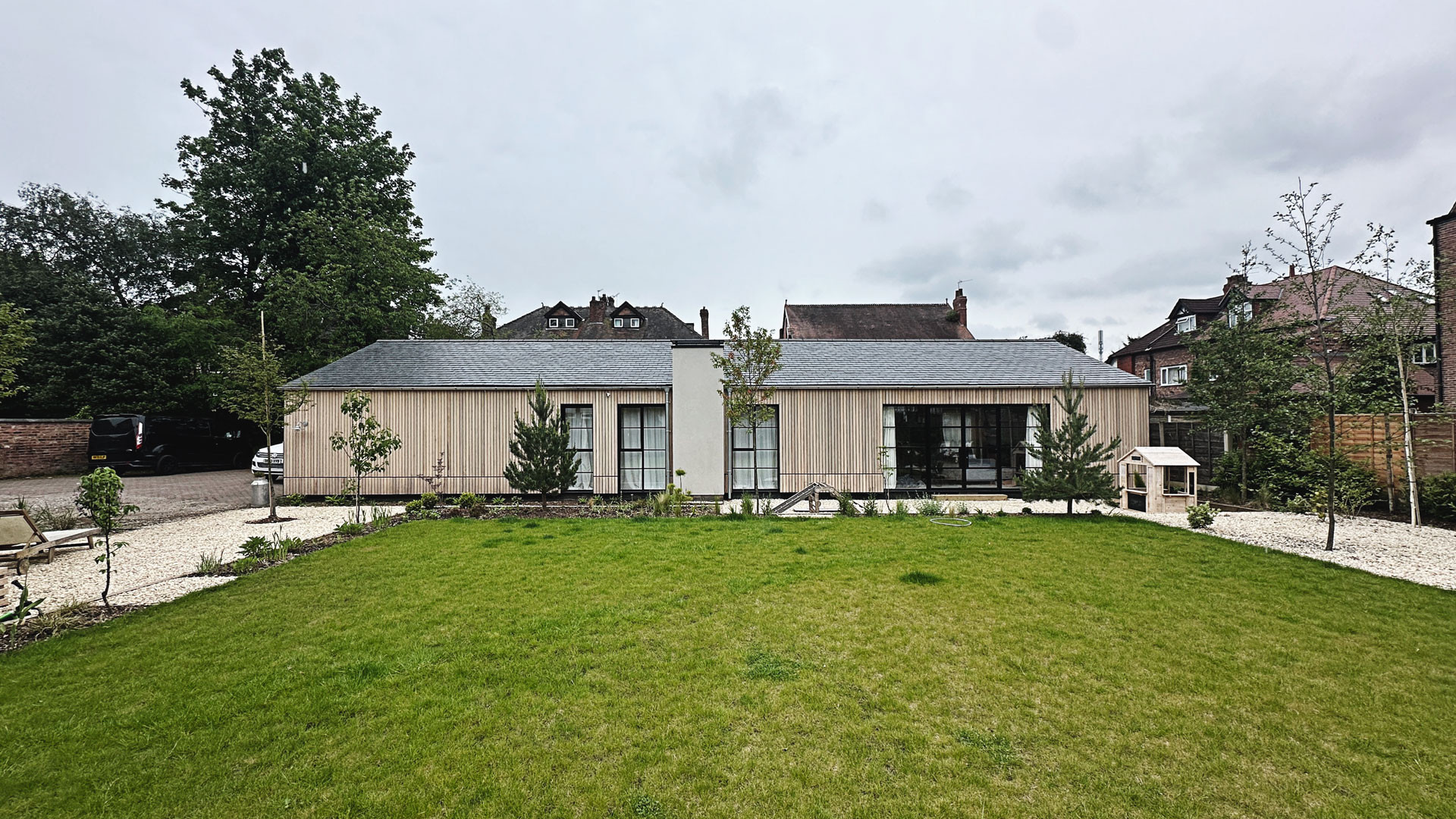Define were appointed to complete an existing self-build property for it's new owners. Inheriting water ingress issues across the existing building fabric, the buildings were stripped back to their existing structure and then re-cloaked in a new timber and slate roof facade.