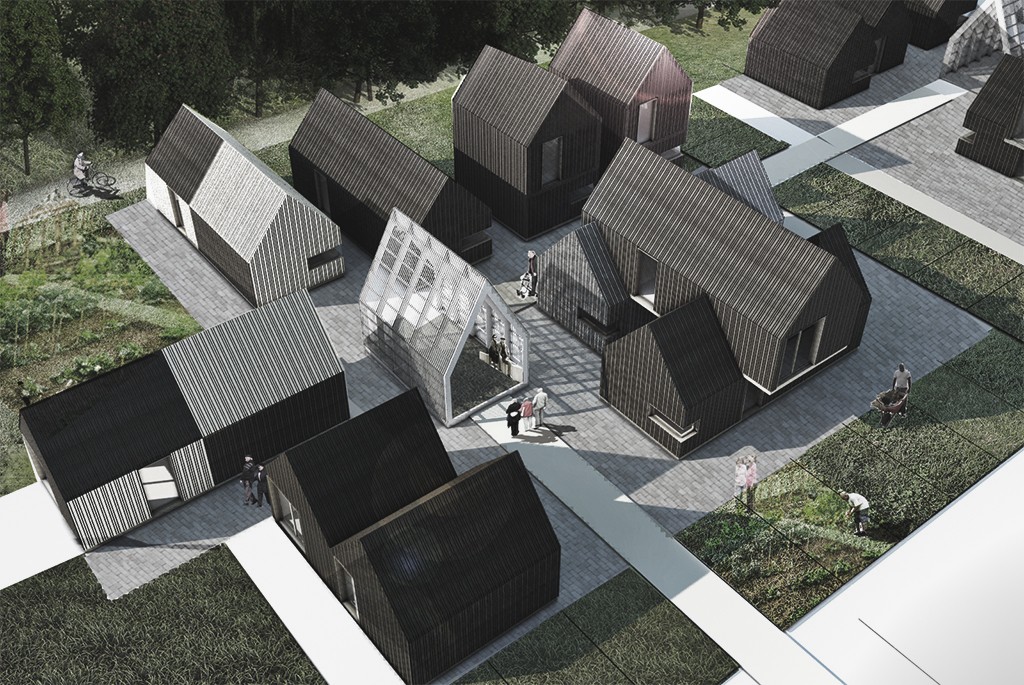 A concept for self-build semi-prefabricated homes centralised around a communal main hub.