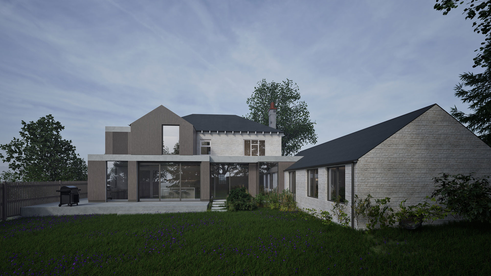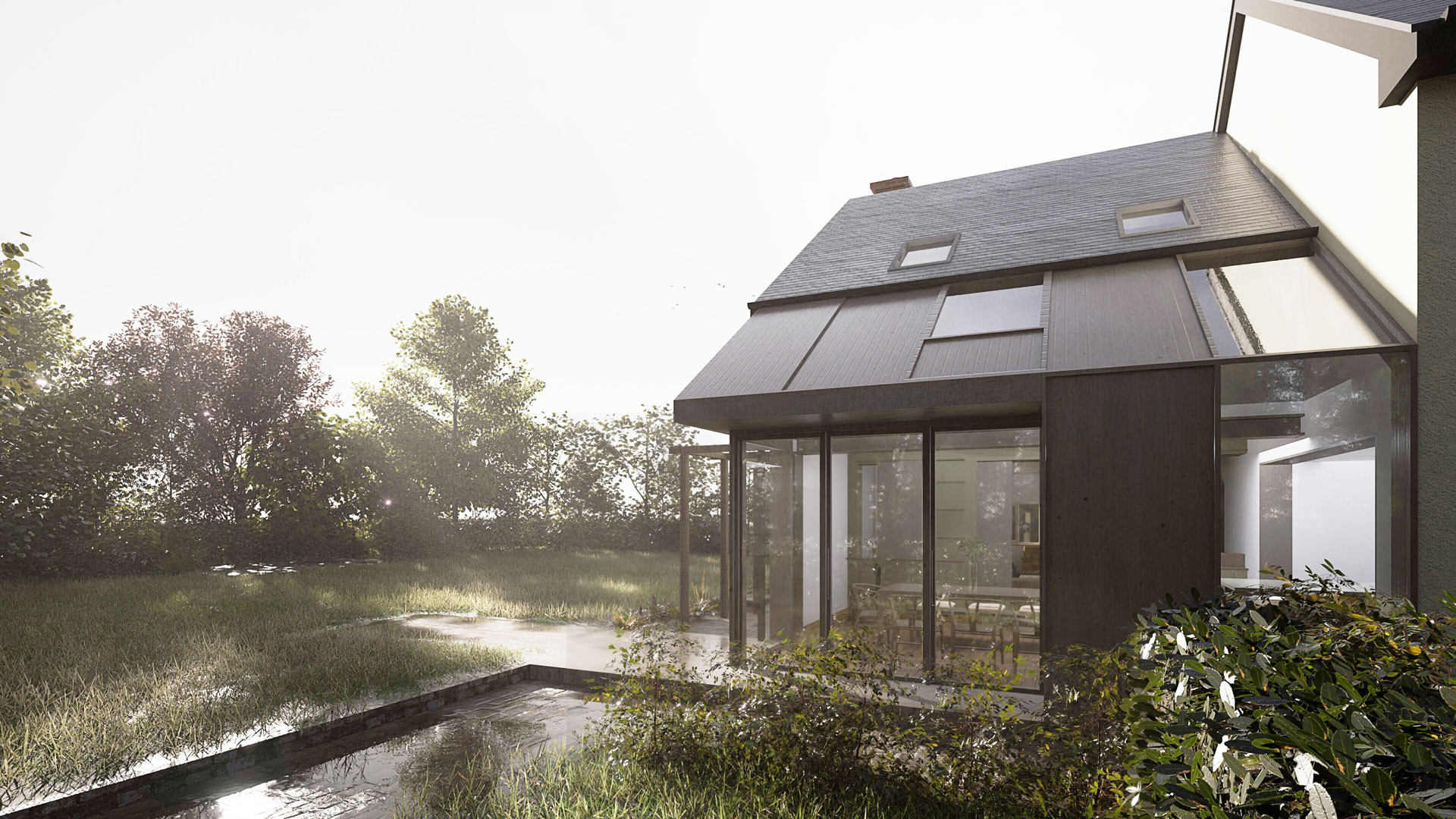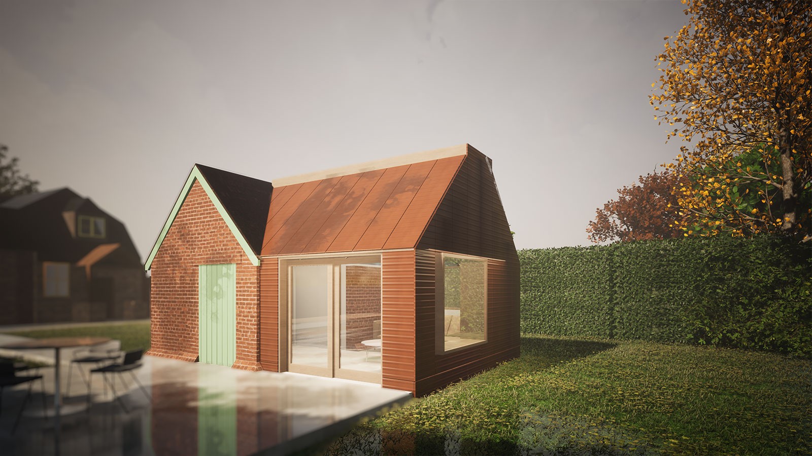 A self-build annex, nestled within a rural landscape.