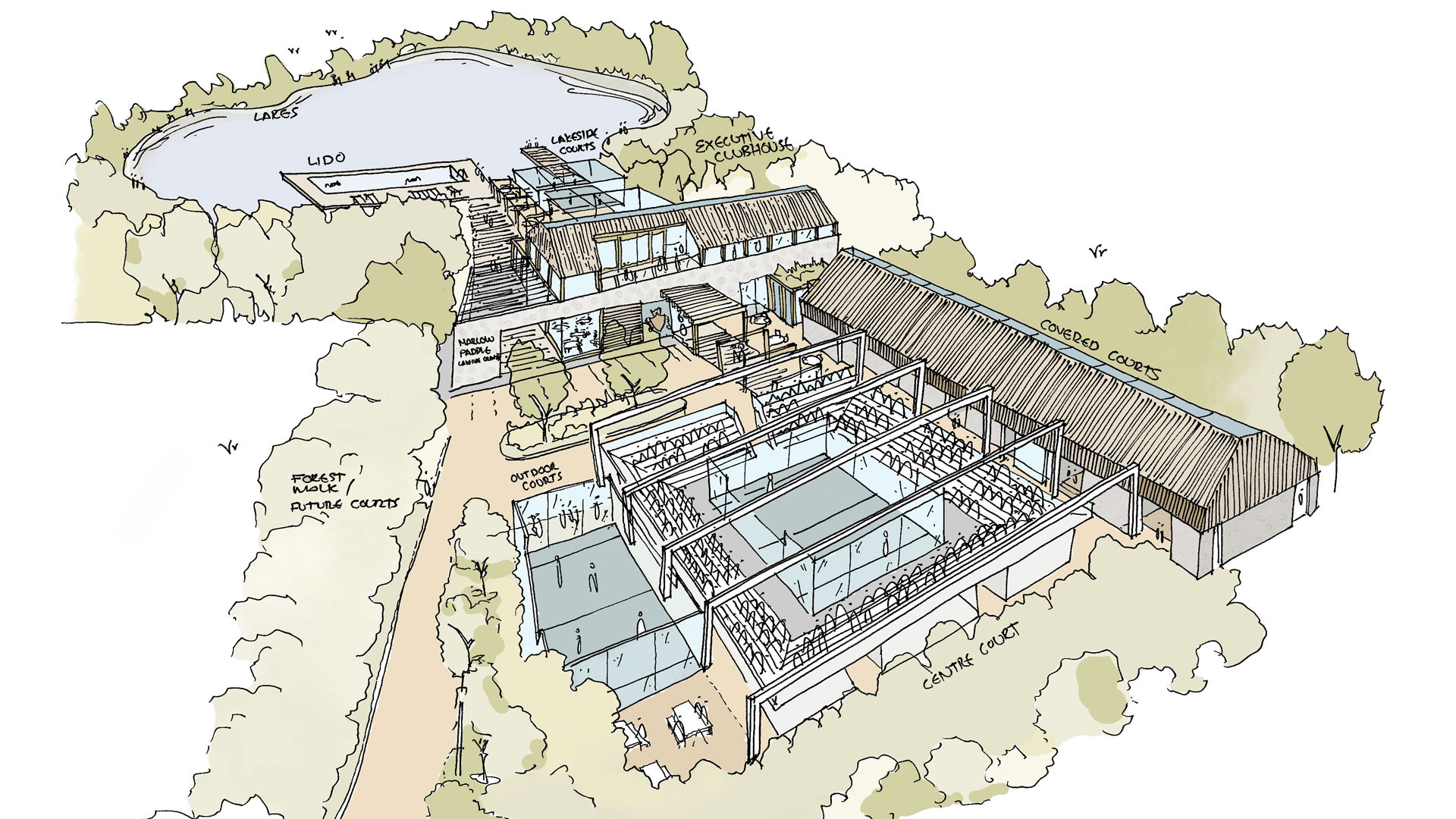 Re-imagination of a padel centre, combining wellness and sport to offer unique immersive experiences.