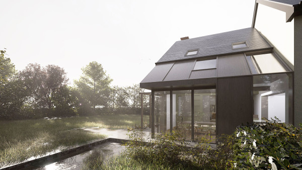 An innovative family home in open countryside marrying new technologies and farmstead principles.