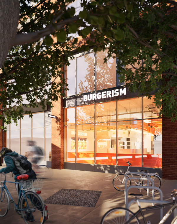 Burgerism's newest unit prominently located in Piccadilly Gardens, reflecting the brand's core values of quality and simplicity in its interior.